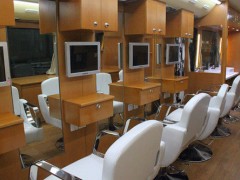 車載式移動理發(fā)車/美容美發(fā)車不僅有沙龍鏡、沙龍椅、專業(yè)的洗頭臺、燙發(fā)機(jī),還有電視、空調(diào)、勁爆的音響和絢麗的燈光,儼然一艘理發(fā)“航母”,里面裝修配置煞是吸人眼球-理發(fā)車、化妝車、美甲車定制15271321777